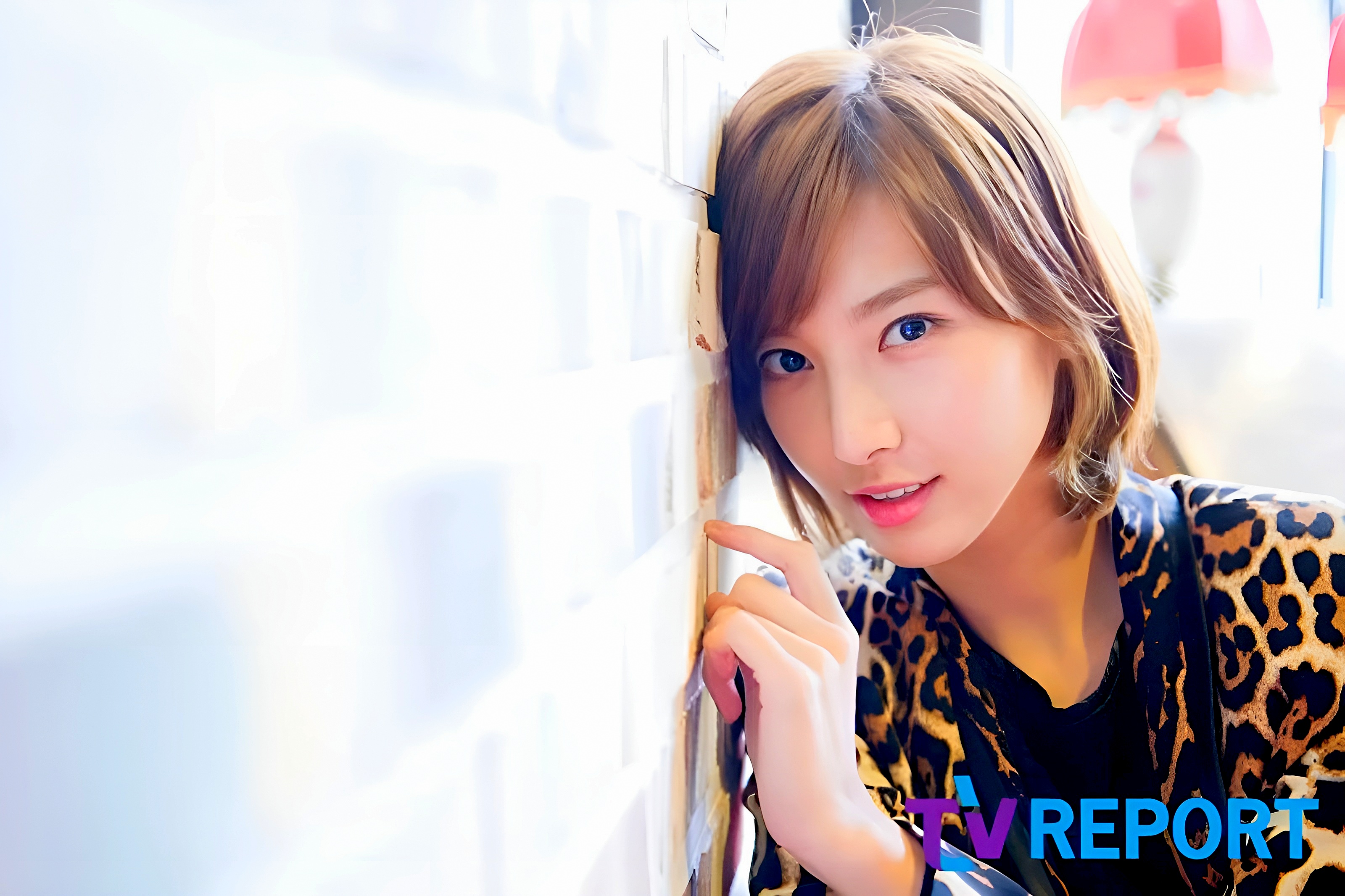 이해인 (갱키즈) 티비리포트 인터뷰를 위해 벽 옆에 포즈를 취하고있다!!!
